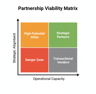 Carve out quality time to find out the answers to these questions: What are your strategic goals? What unique value do you offer and critically, what are your operational gaps? Without this self-awareness, you risk being the High-Potential Ally or, worse, the Danger Zone in someone else's matrix. True partnership strategy begins with your own rigorous self-assessment.